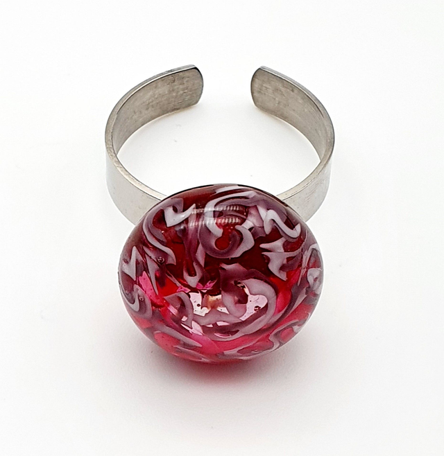 Bague Méandre rose sur une monture en acier inoxydable, taille réglable.