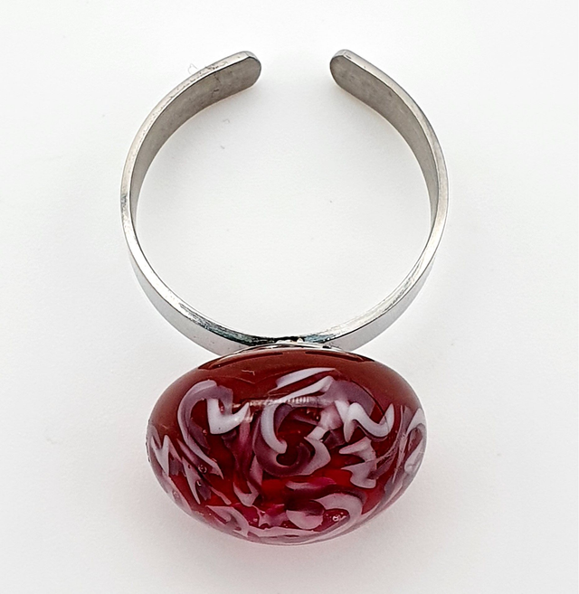 Bijou en verre filé au chalumeau dans mon atelier. Pièce unique recuite dans un four spécial à 500°C pour afin d'assurer la meilleure solidité possible en éliminant les tensions dans le verre dues aux différents temps de refroidissement lors de sa fabrication.