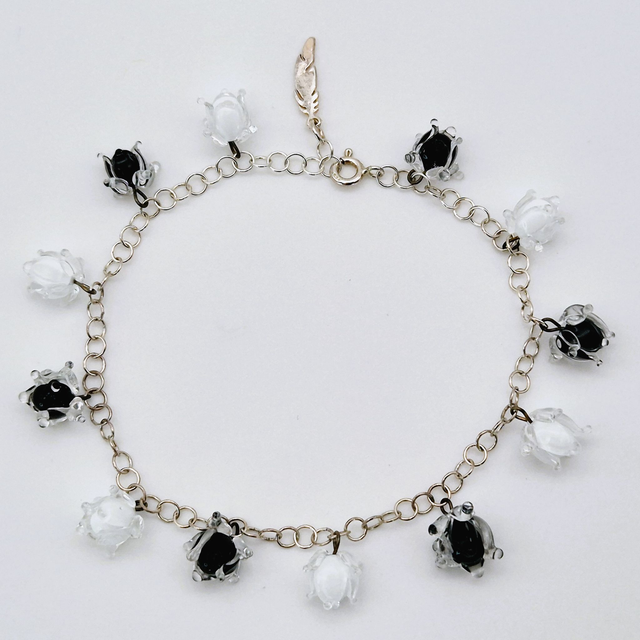 Bracelet Clochettes blanches et noires montées sur une chaîne en Argent 925.