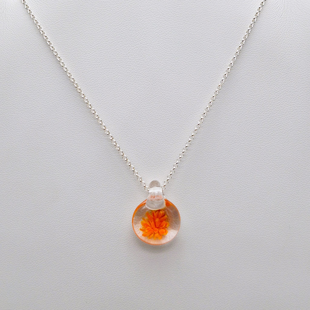 Pendentif Dahlia orange avec ou sans chaîne en Argent 925 de 45 cm.