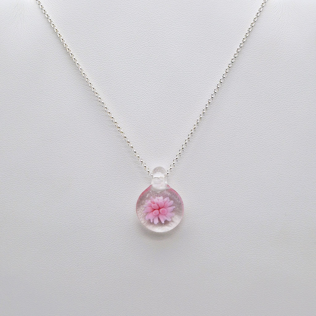 Pendentif Dahlia rose avec ou sans chaîne en Argent 925 de 45 cm.